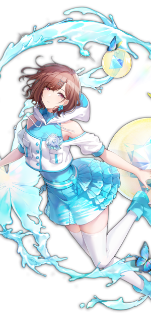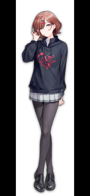 She is a cool and cynical girl in her 2nd year of high school. Her cool eyes and a mole under her left eye add to her distinctive appearance. She maintains a cold attitude towards the Producer.