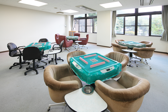 麻雀ルームに自動卓が複数台設置。時期によっては、寝室に自動卓1台の宿泊プランもあり。