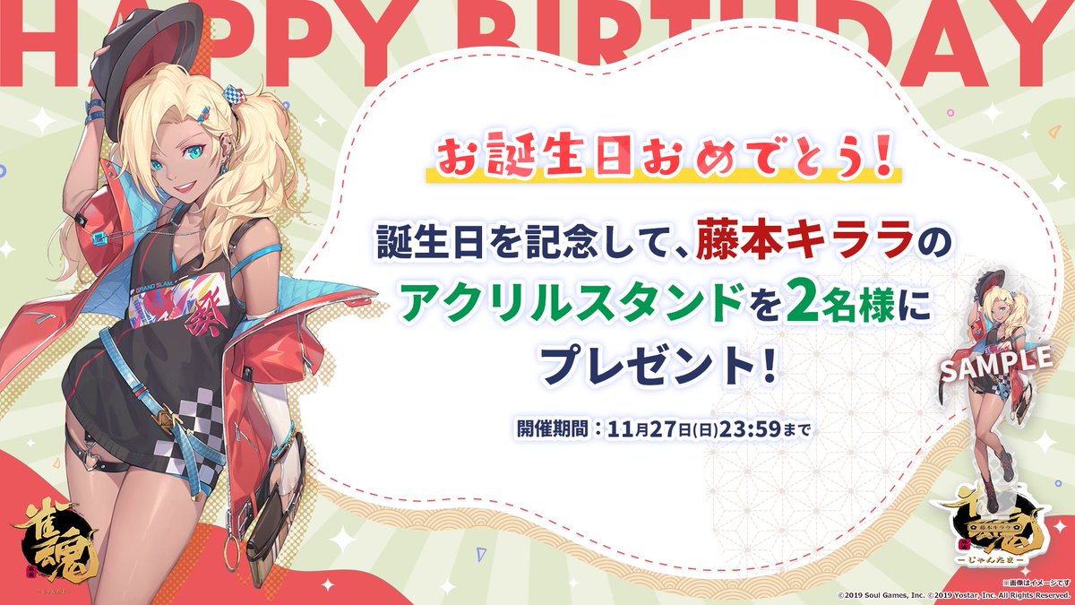 誕生日を記念して、抽選で2名様に「藤本 キララ」のアクリルスタンドをプレゼント!