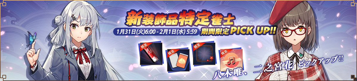 詳細は「全雀士・新装飾品ピックアップ!」をご確認ください。