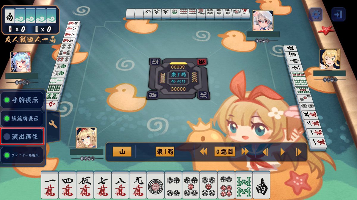 牌譜閲覧時「演出再生」をオフにすると、カットインと和了演出が再生されなくなります。