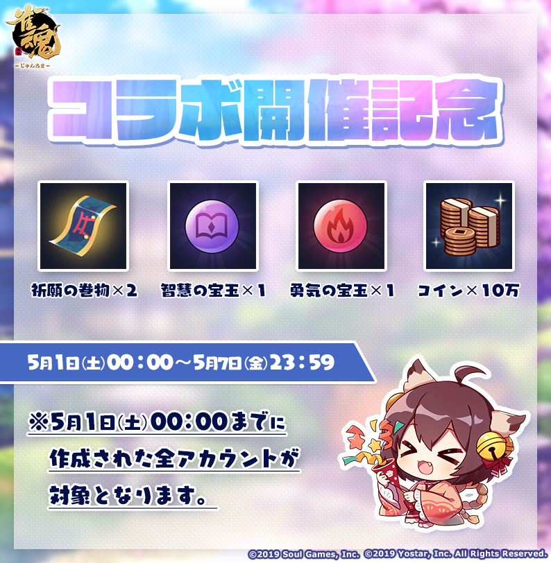 5月1日(土)0:00~5月7日(金)23:59にログインした皆様に下記アイテムを配布します!
