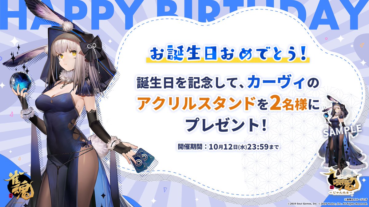 誕生日を記念して、抽選で2名様に「カーヴィ」のアクリルスタンドをプレゼント!