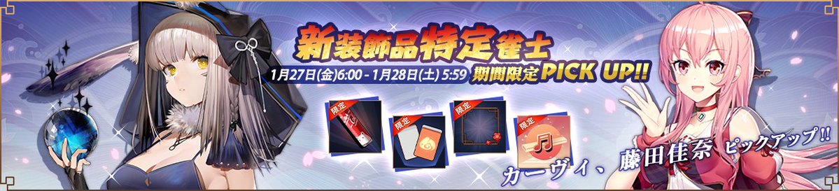 特定雀士「カーヴィ」「藤田 佳奈」「明智 英樹」の出現確率が期間限定でアップします!