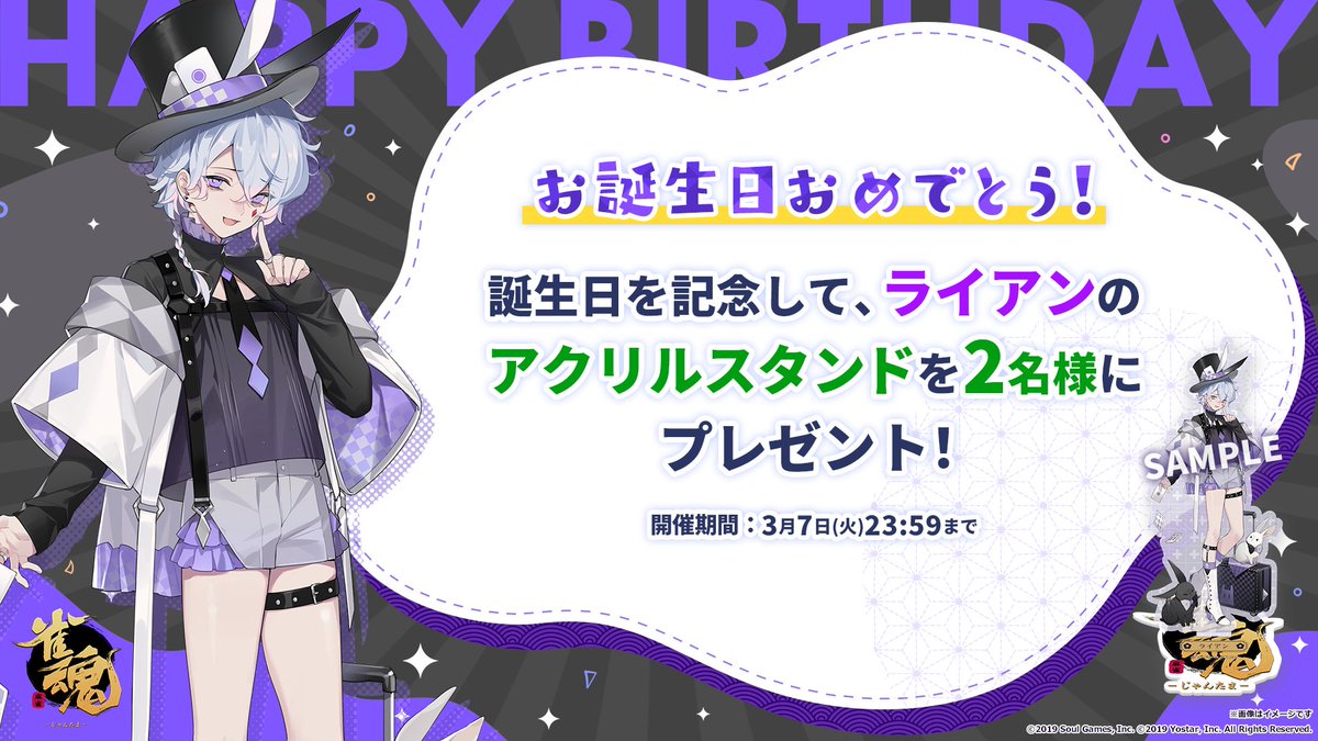 誕生日を記念して、抽選で2名様に「ライアン」のアクリルスタンドをプレゼント!