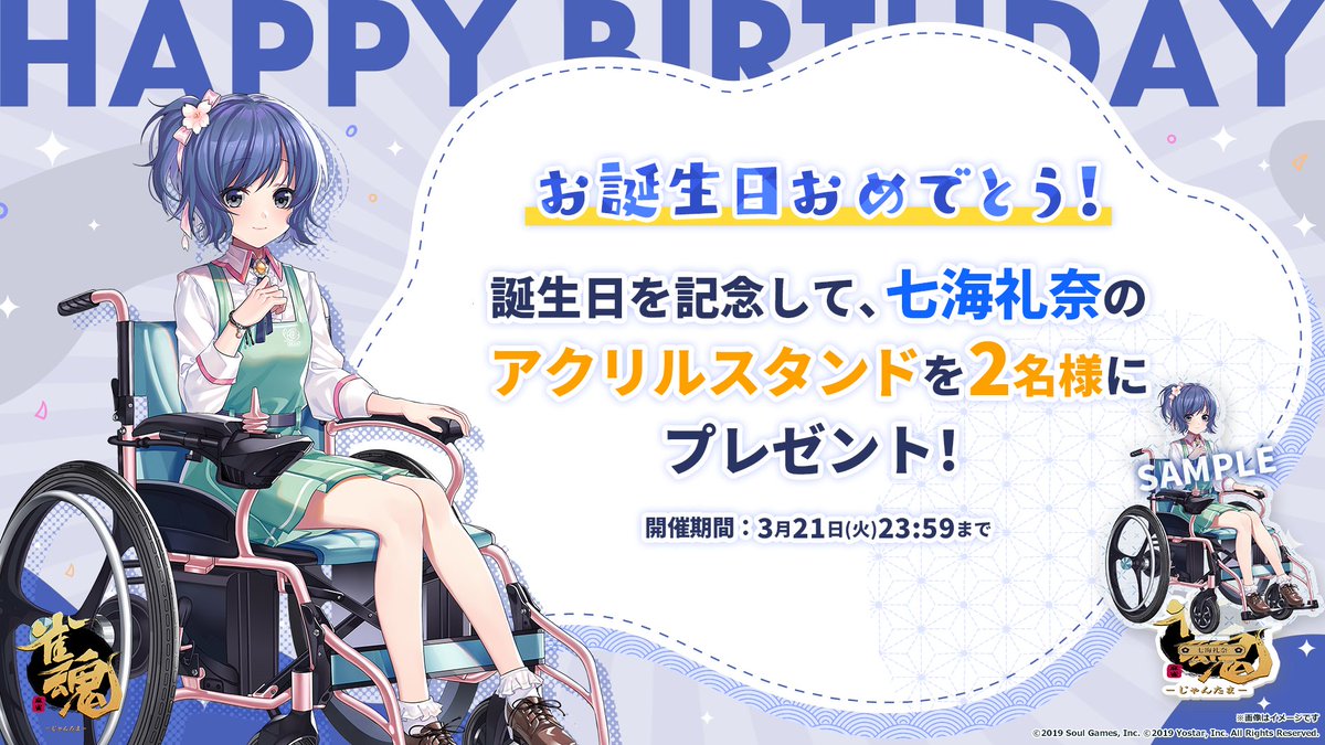 誕生日を記念して、抽選で2名様に「七海 礼奈」のアクリルスタンドをプレゼント!