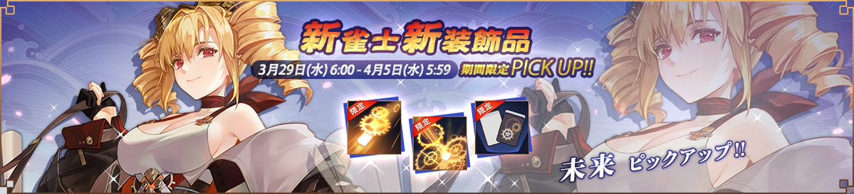 新雀士「未来」特定雀士「かぐや姫」「福姫」「滝川 夏彦」「サミール」の出現確率が期間限定でアップします!