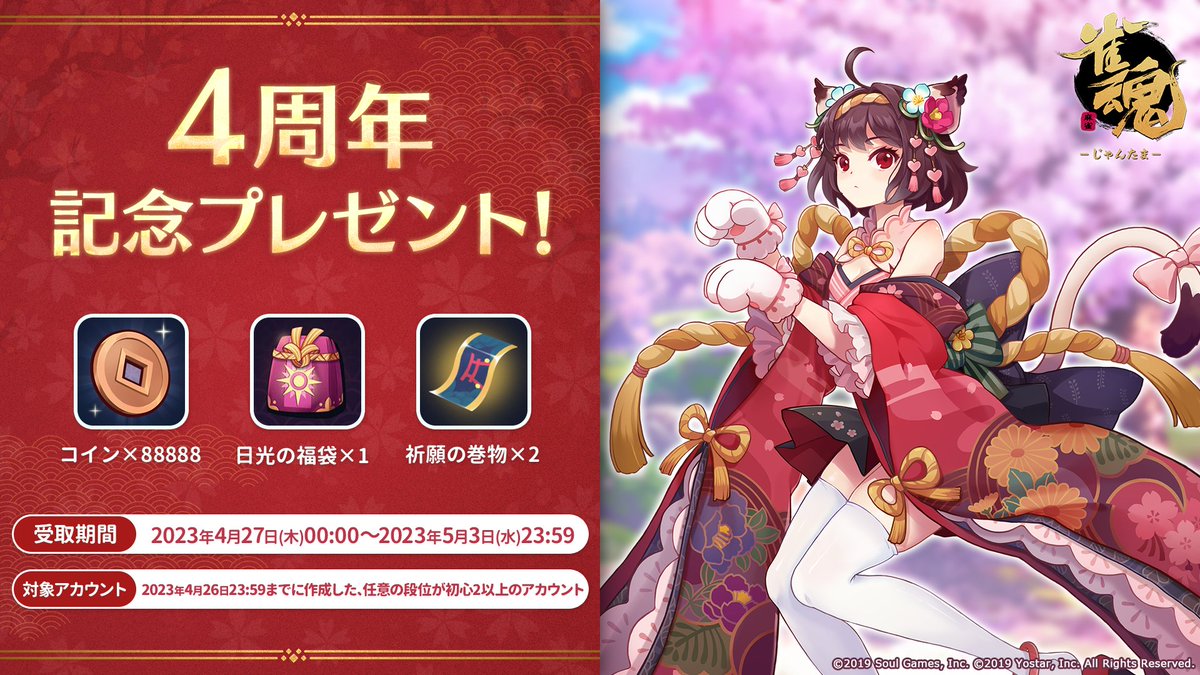 【#雀魂4周年 記念配布!】
