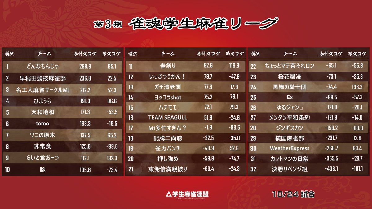 【第3期 #雀魂学生麻雀リーグ 第7節】