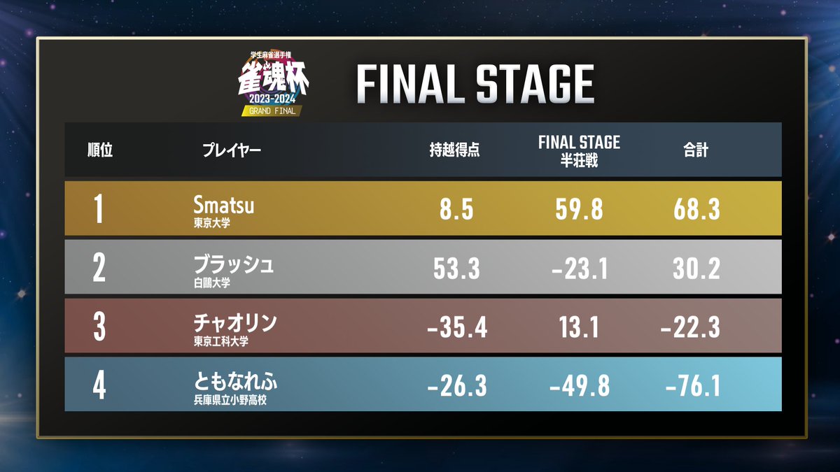 【#雀魂杯 学生麻雀選手権2023-2024グランドファイナル】